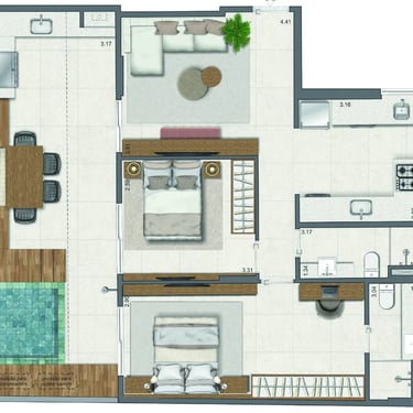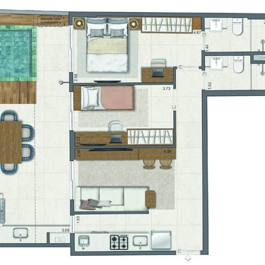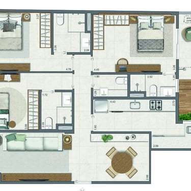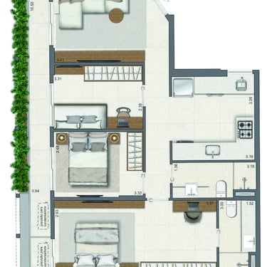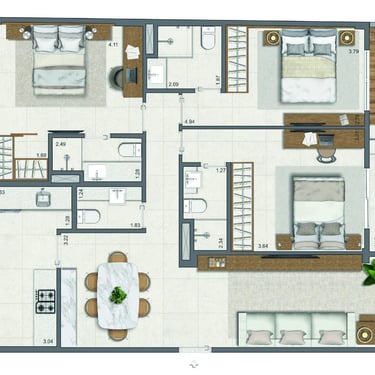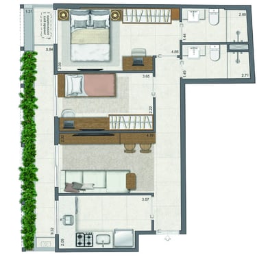 Com opções de apartamentos de 2 e 3 quartos, o Paradís Mozak oferece metragens generosas que variam de 75m² a 147m², proporcionando o espaço e o conforto ideais para o seu estilo de vida. Cada detalhe foi pensado para oferecer uma experiência única, combinando design contemporâneo com a rica história do local.